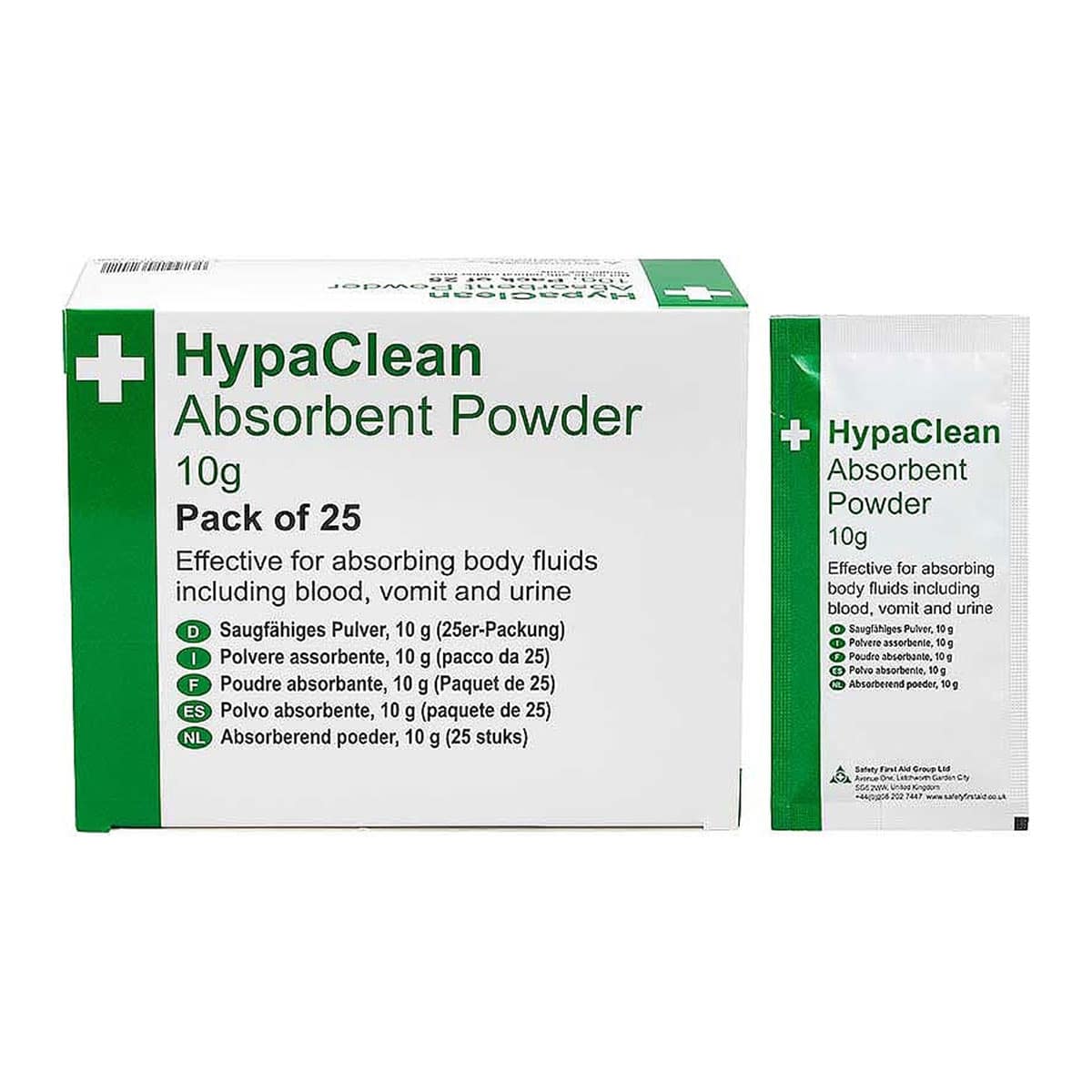 Absorbent Powder Ideal for the disposal of body fluid spillages. HypaClean Absorbent Powders are an essential tool for the effective cleaning of body fluid spills including blood, vomit, or urine. Highly absorbent qualities and a 10g yield of powder absorb...