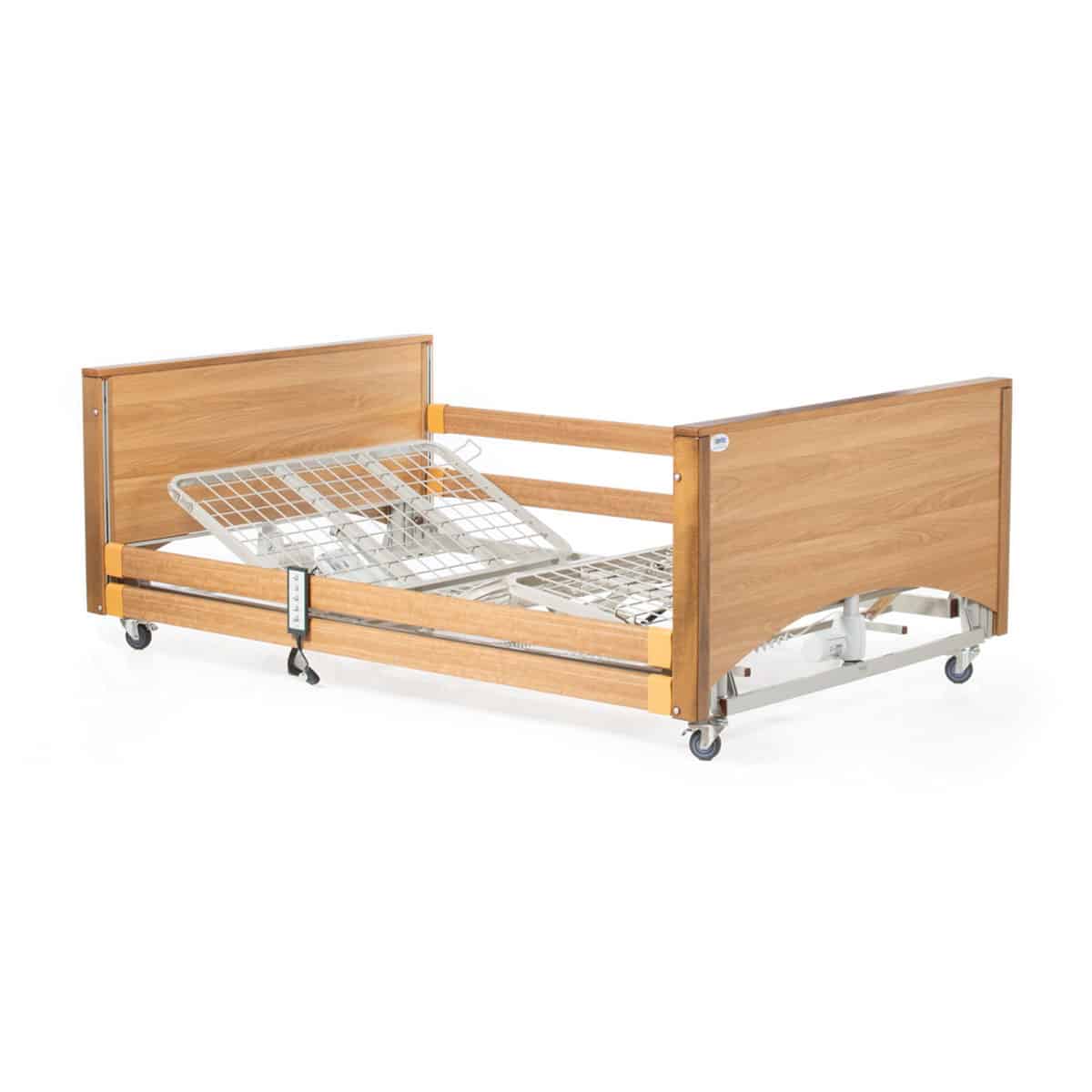 The Lomond Bariatric Profiling Bed (1200mm wide) includes 2-bar bed rails and provides the ultimate balance between user care, functionality and quality. All beds come with the added benefit of Trendelenburg one-way tilting feature, 4 robust 3″ brake castors. For optimum patient comfort the four-section mattress support with mattress grips is controlled by a 10 function lockable handset. Available in oak and walnut. While being a heavy duty bed, the Lomond also has the unique ability of its range extending from 20cm to 80cm high.