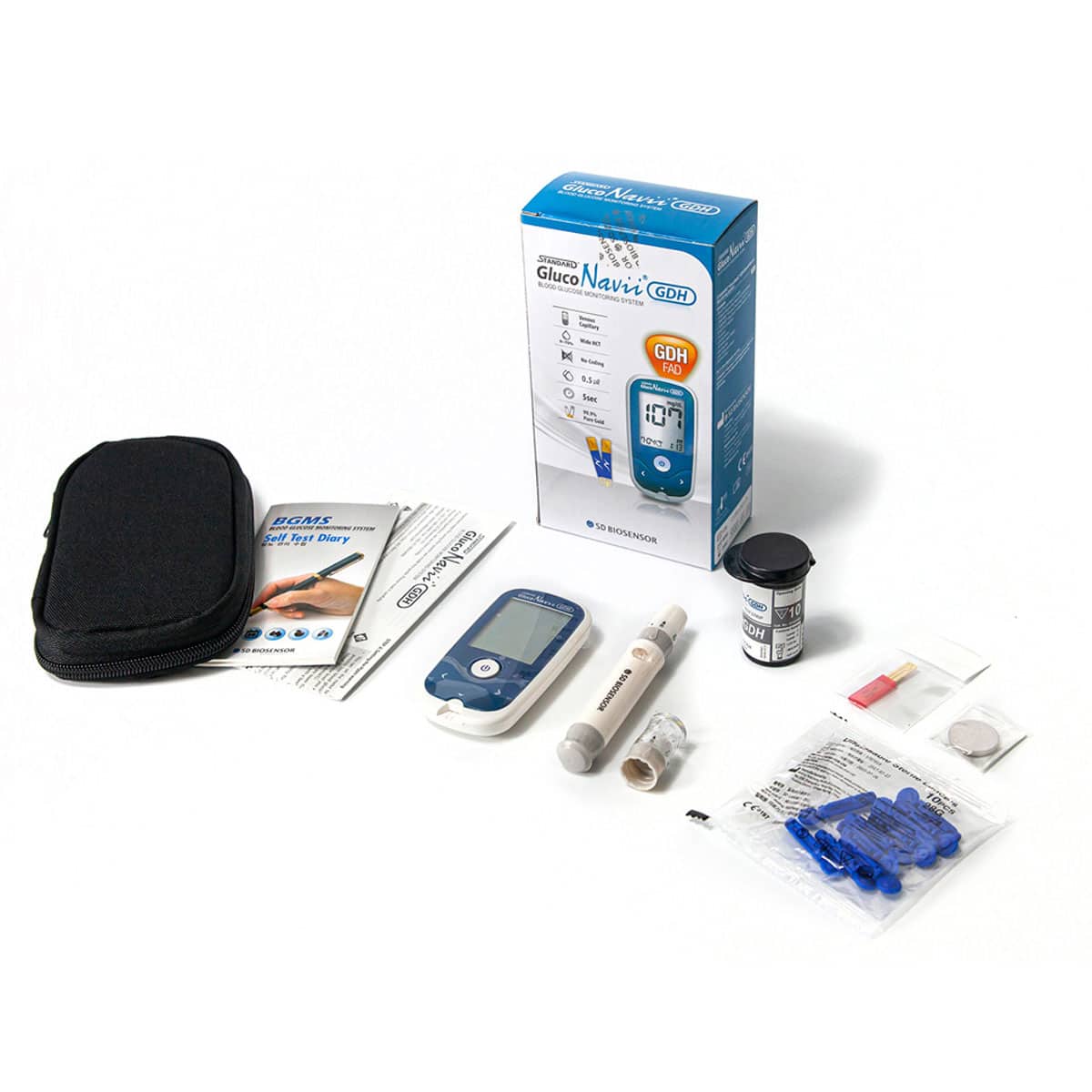A blood glucose meter is a medical device used to measure the concentration of glucose (sugar) in the blood. It is primarily used by people with diabetes to monitor their blood sugar levels and manage their condition.  This kit from Gluco Navii includes a hand-held Blood Glucose Meter, test strips and lancets.  It has everything you need to start testing your blood glucose and subsequently help manage your blood sugar levels.  The meter is easy-to-read, storing up to 500 test results.