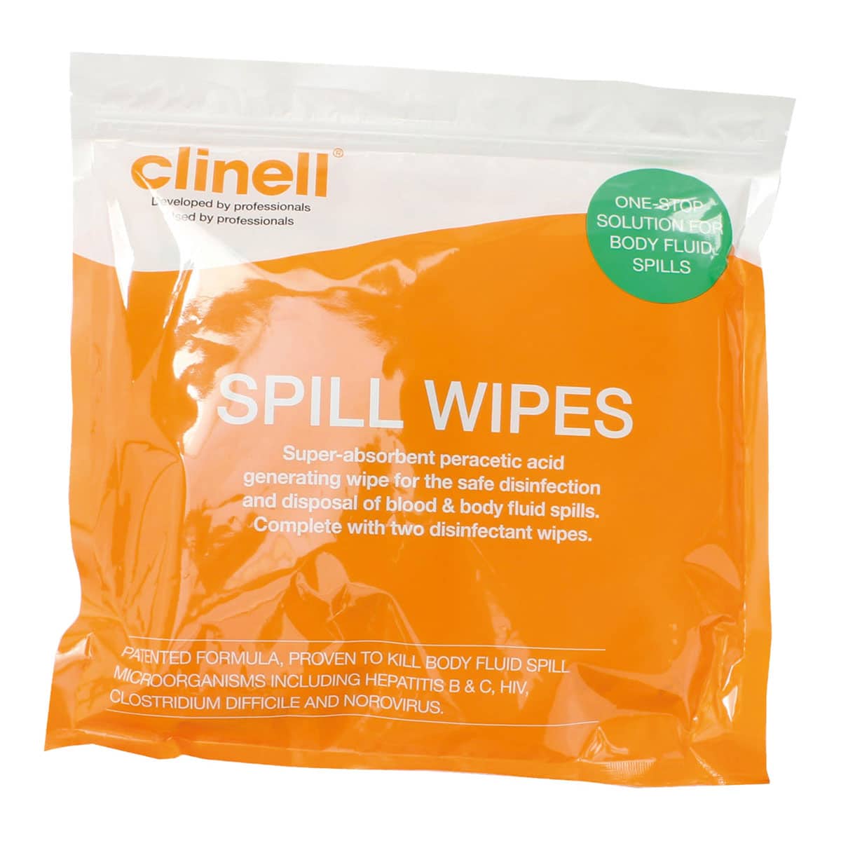 Clinell Spill Wipes (Single Pack) Clinell Spill Wipes a revolutionary method for dealing with body fluid spills. Encourage staff compliance by making things quicker, easier and safer than ever before. Each patented kit contains a peracetic acid-generating pad suitable for...