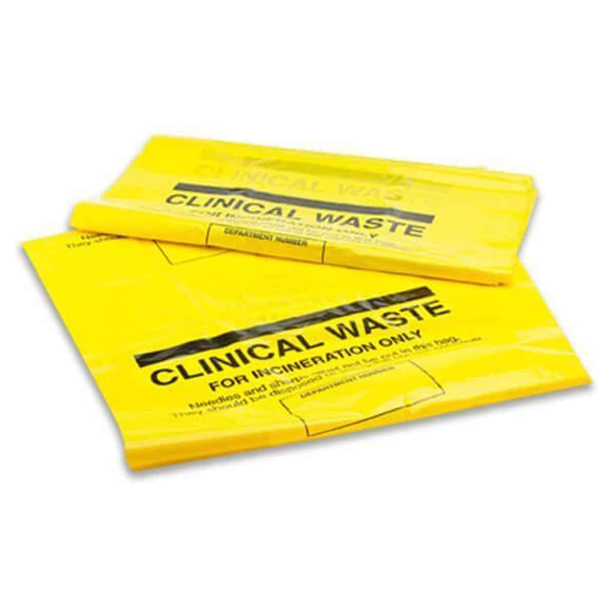 Clinical Waste Bags Yellow Clinical Waste Bags – for disposal of all clinical/soiled products. Easy to dispense clinical waste sacks manufactured to the highest specifications for maximum safety. All materials with any bodily fluids, such as blood, should be placed...