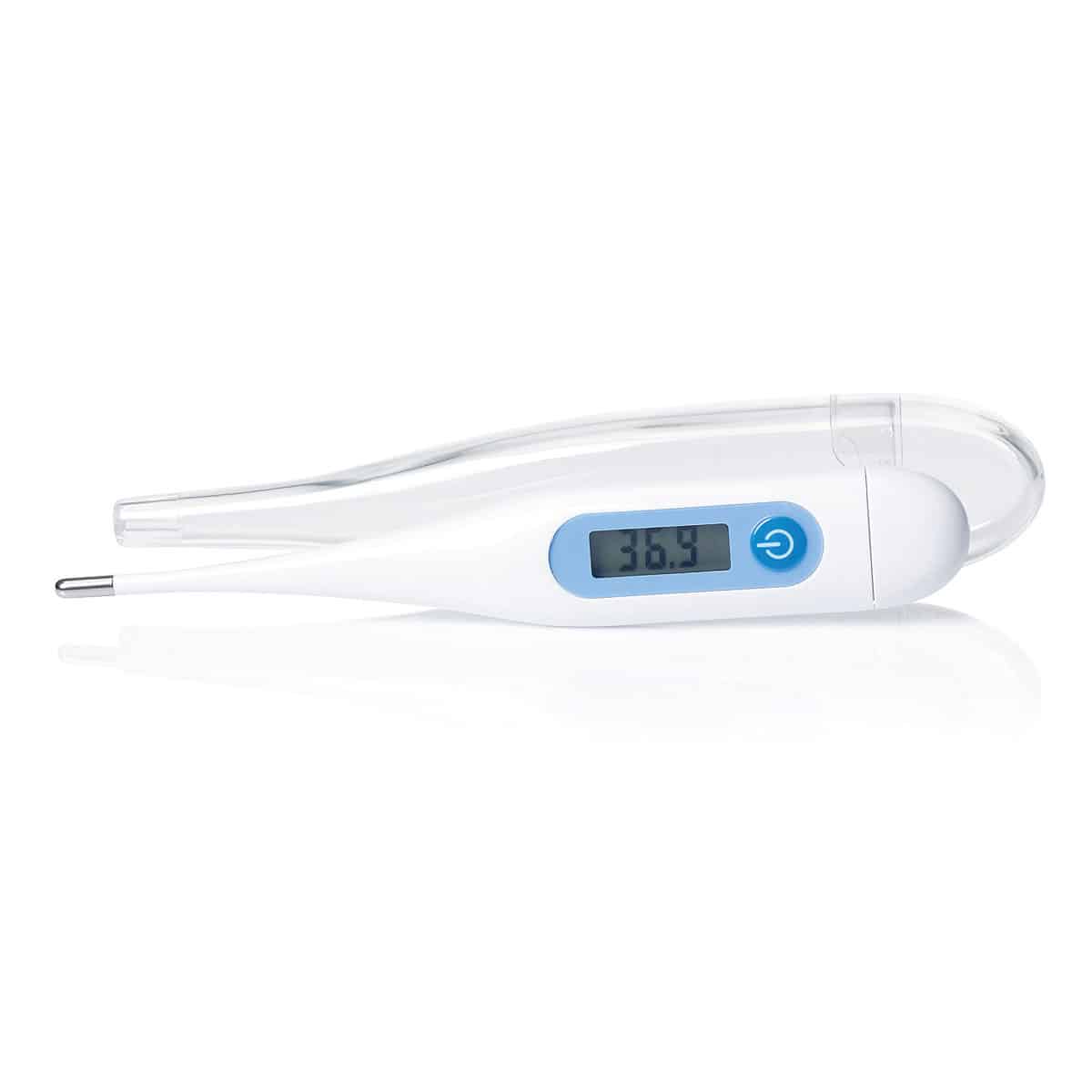 The digital thermometer comes with a rigid tip. Small and lightweight made from durable, wipe clean plastic. It provides accurate readings within 60 seconds and easily read on the LCD screen. It is compact (134x22x14mm). Suitable for oral, axillary and rectal use. A bleeper function alerts you when the body reaches fever temperature. The machine benefits from an auto shut-off feature prolonging the batteries life.