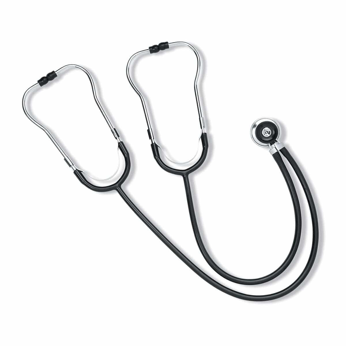 The Dual Head Teaching Stethoscope is designed for teaching purposes. The stethoscope itself features two bin-aural headsets to a single headpiece that allow both the teacher and student to listen to heart and chest sounds at the same time.