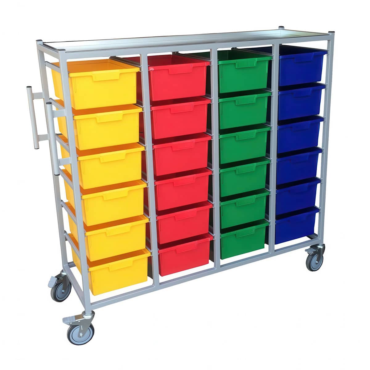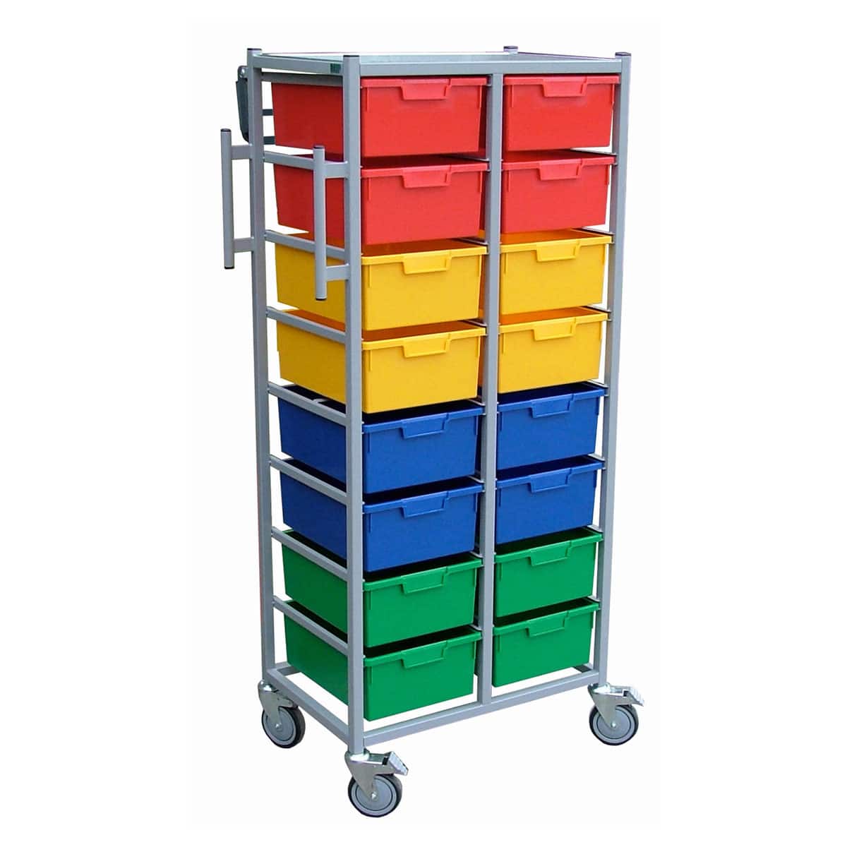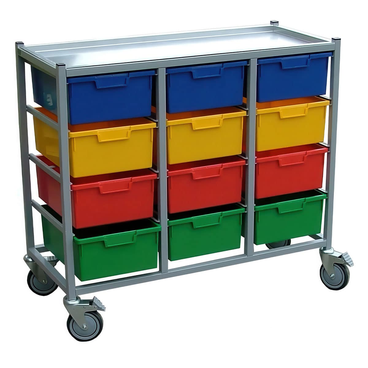 For the distribution of clean personal clothing, enabling separation and distribution of individuals clothing. The Karri-Carts are made from a light weight, high quality powder coated steel. They come complete with a selection of coloured trays, to help with sorting. It also has a robust hanging rail to transport products on hangers. (KCart/Combi does not include a hanging rail).
