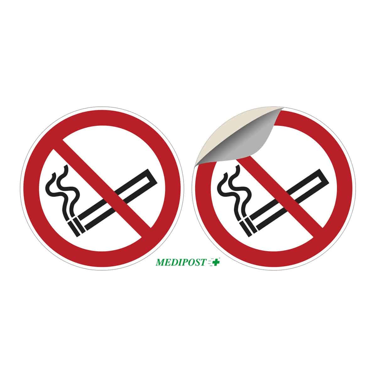 No Smoking Stickers (Pack of 2) Pack of 2 No smoking Stickers – ideal for use in workplace environments and public spaces to communicate compliance with regulations. Red & black on gloss white permanent vinyl and laminated for additional durability....