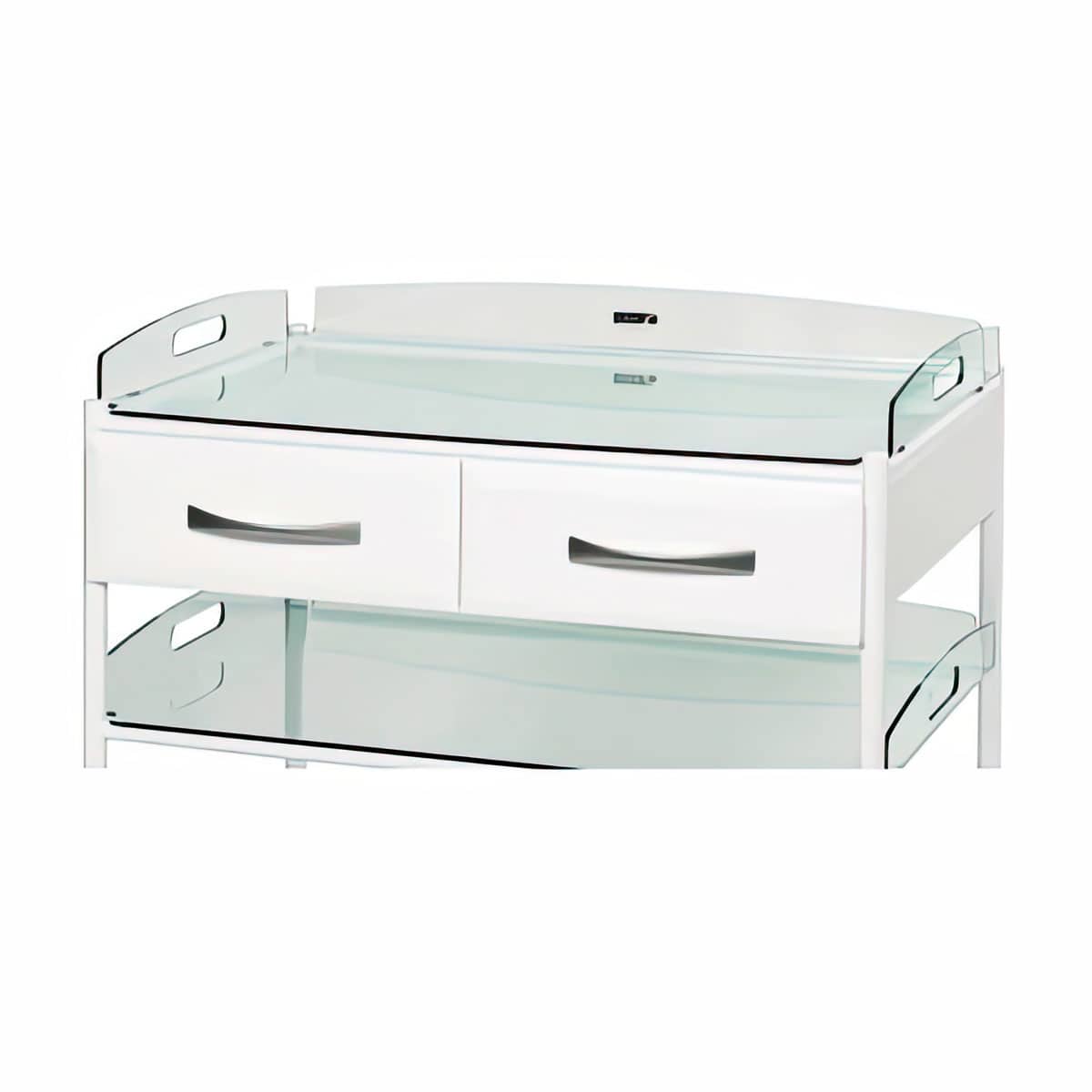 Sunflower Dressing Trolleys with Glass Effect Safety Trays are innovative in design and in their use of materials. The Sunflower dressing Trolley provides hygienic mobile support and storage, whilst being functional, durable and easy to clean.